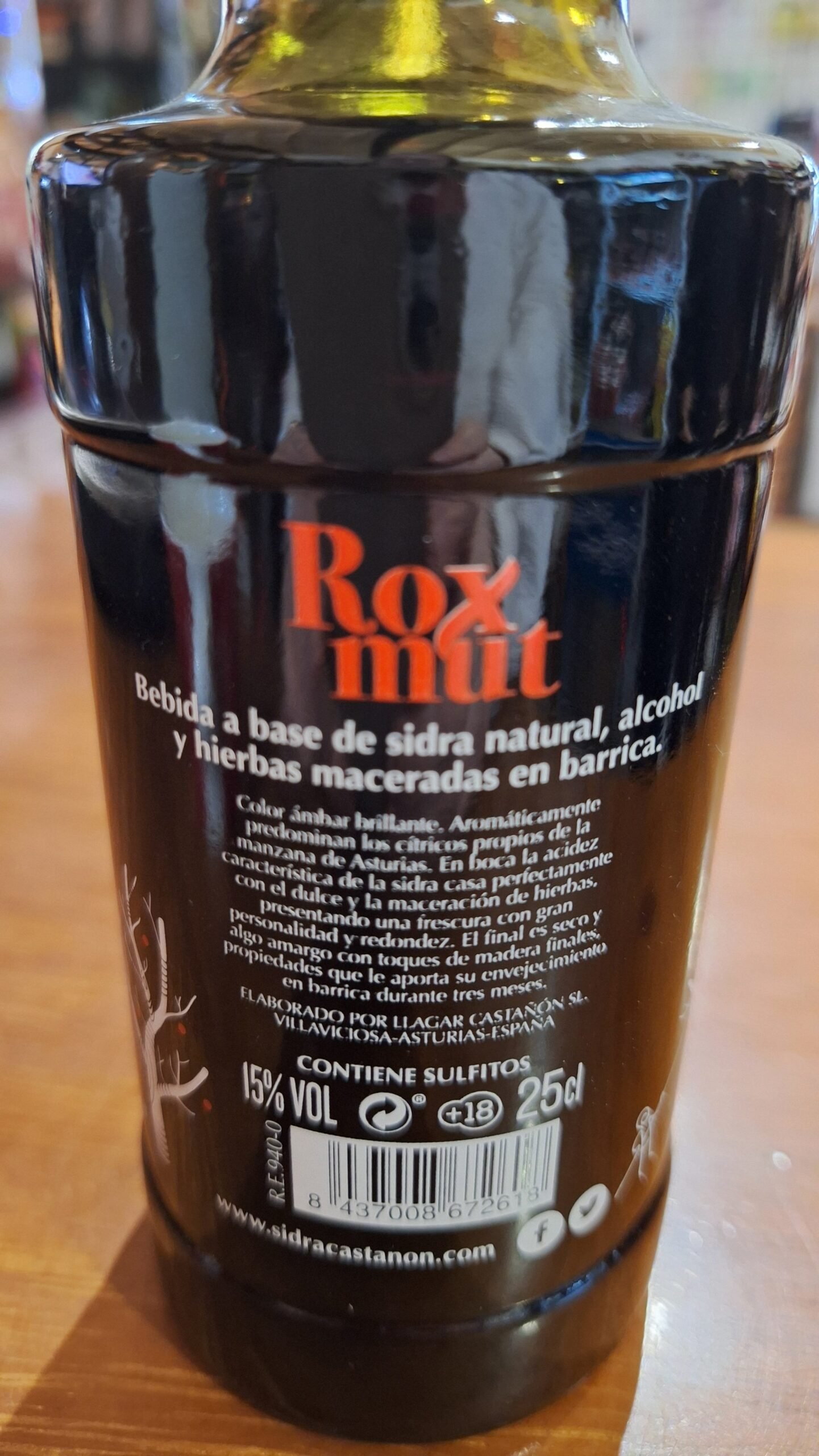 Bebida en base se sidra natural, alcohol 15º y hierbas, macerada en barrica. Color ámbar brillante. Aromáticamente predominan los cítricos propios de la manzana de Asturias. En boca la acidez característica de la sidra casa perfectamente con el dulce y la maceración de hierbas, presentando una frescura con gran personalidad y redondez. Elaborado por Llagar Sidra Castañón.