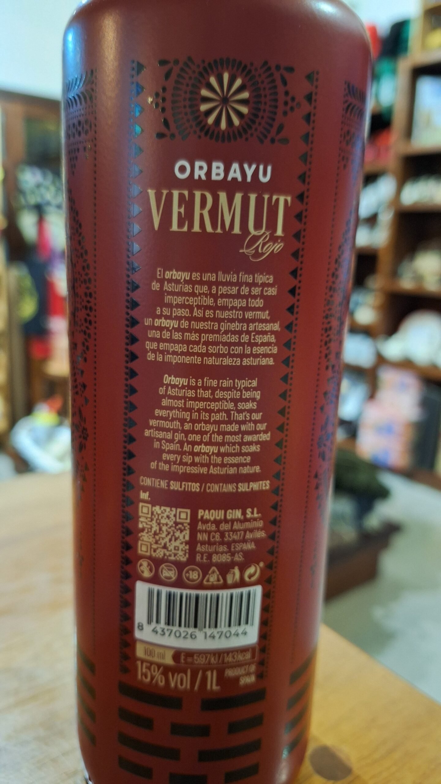 Bebida combinación de vermut y ginebra Orbayu Gin, alcohol 15º.