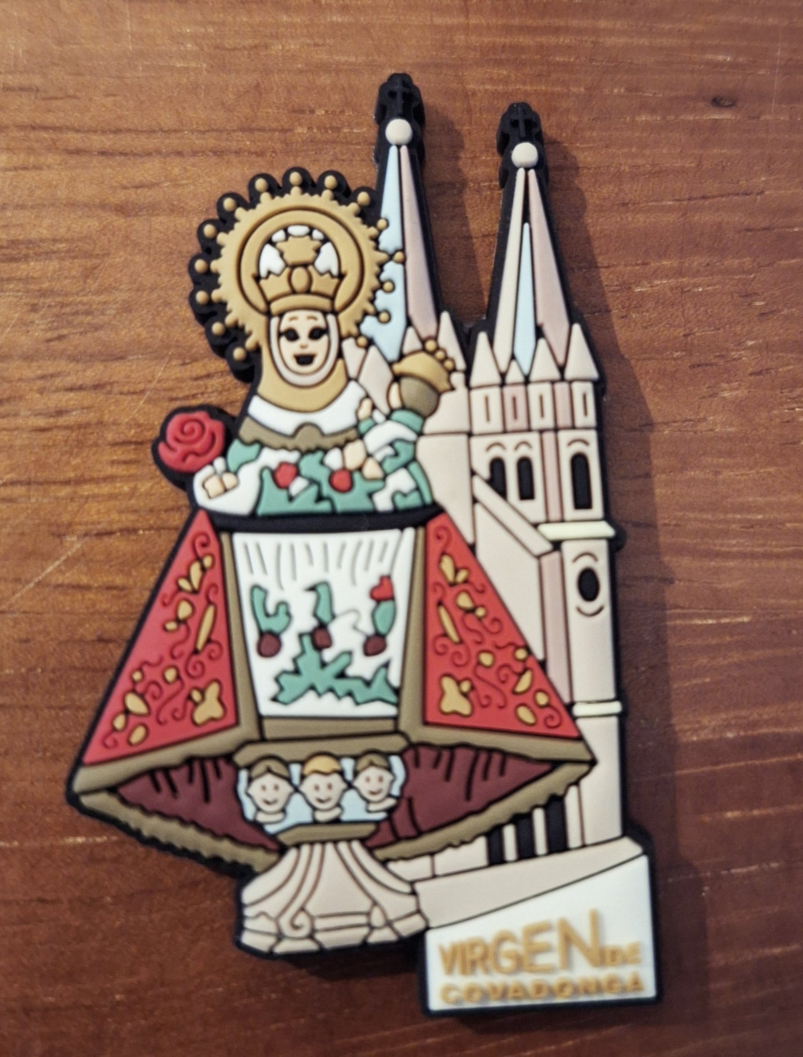 Imán de goma recuerdo de Asturias, con la Virgen de Covadonga.