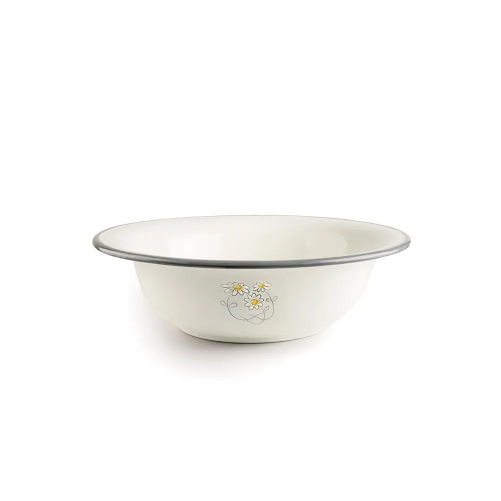 Palangana de Peltre esmaltado con flores de la marca española Ibili .  De 32 cm de diámetro.  Apta para lavavajillas.  Elemento decorativo y de múltiples usos.