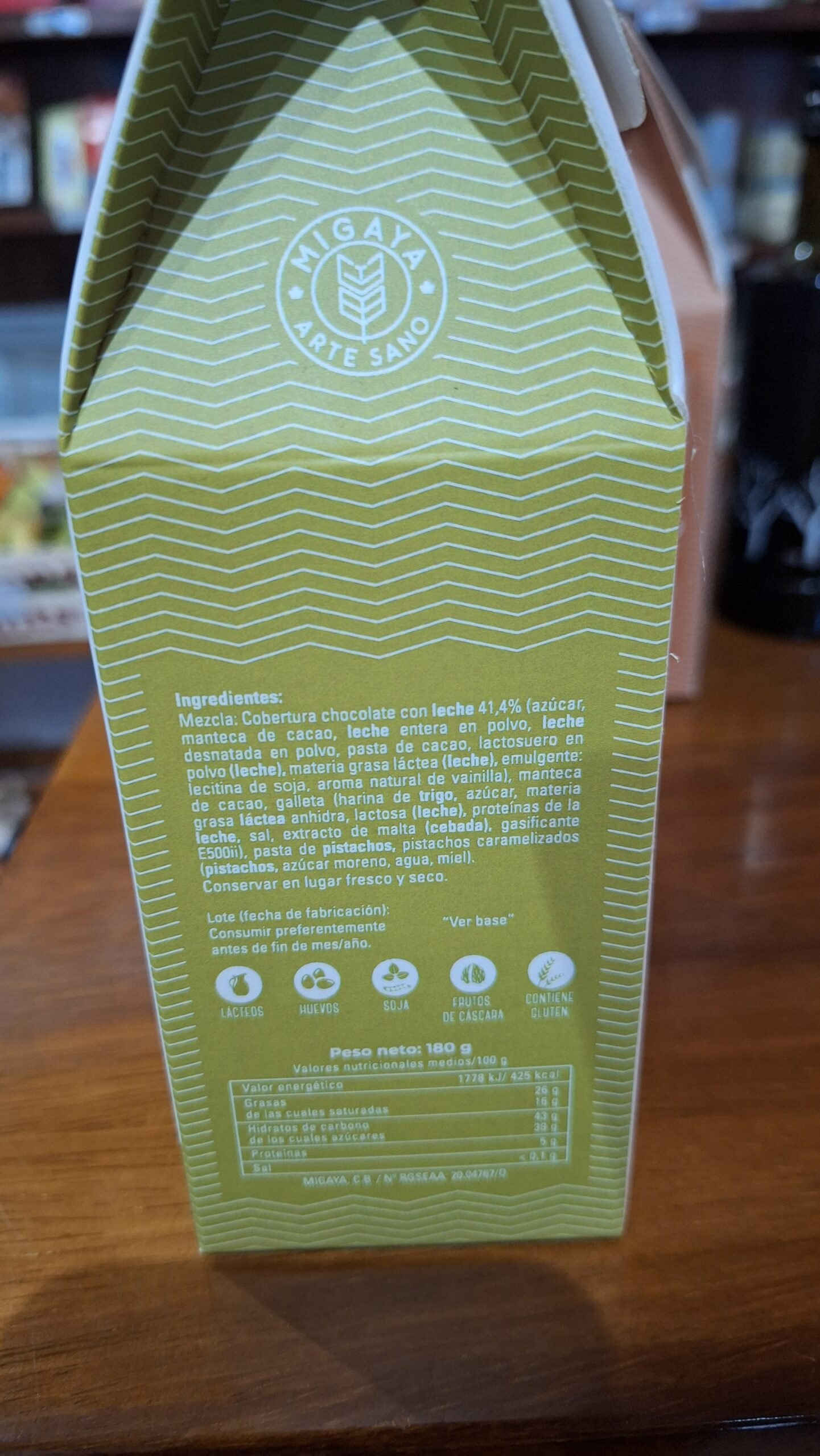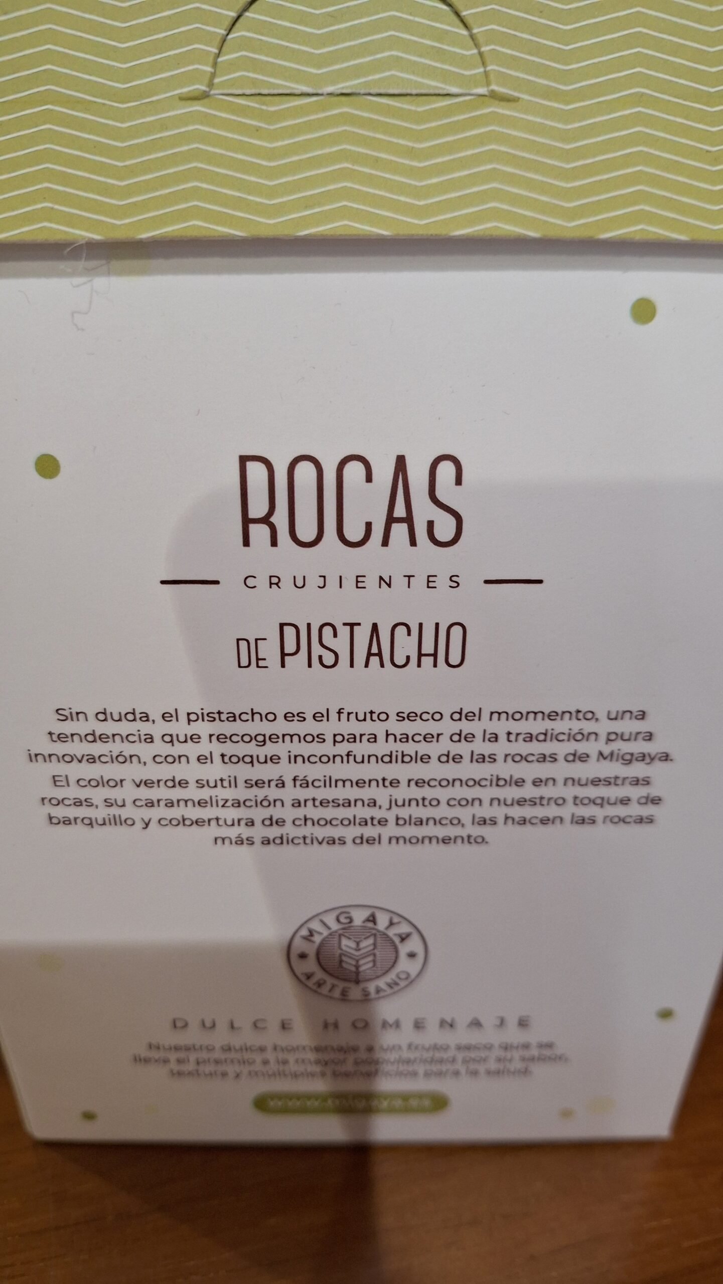 Rocas Crujientes chocolate blanco, barquillo y pistachos caramelizados