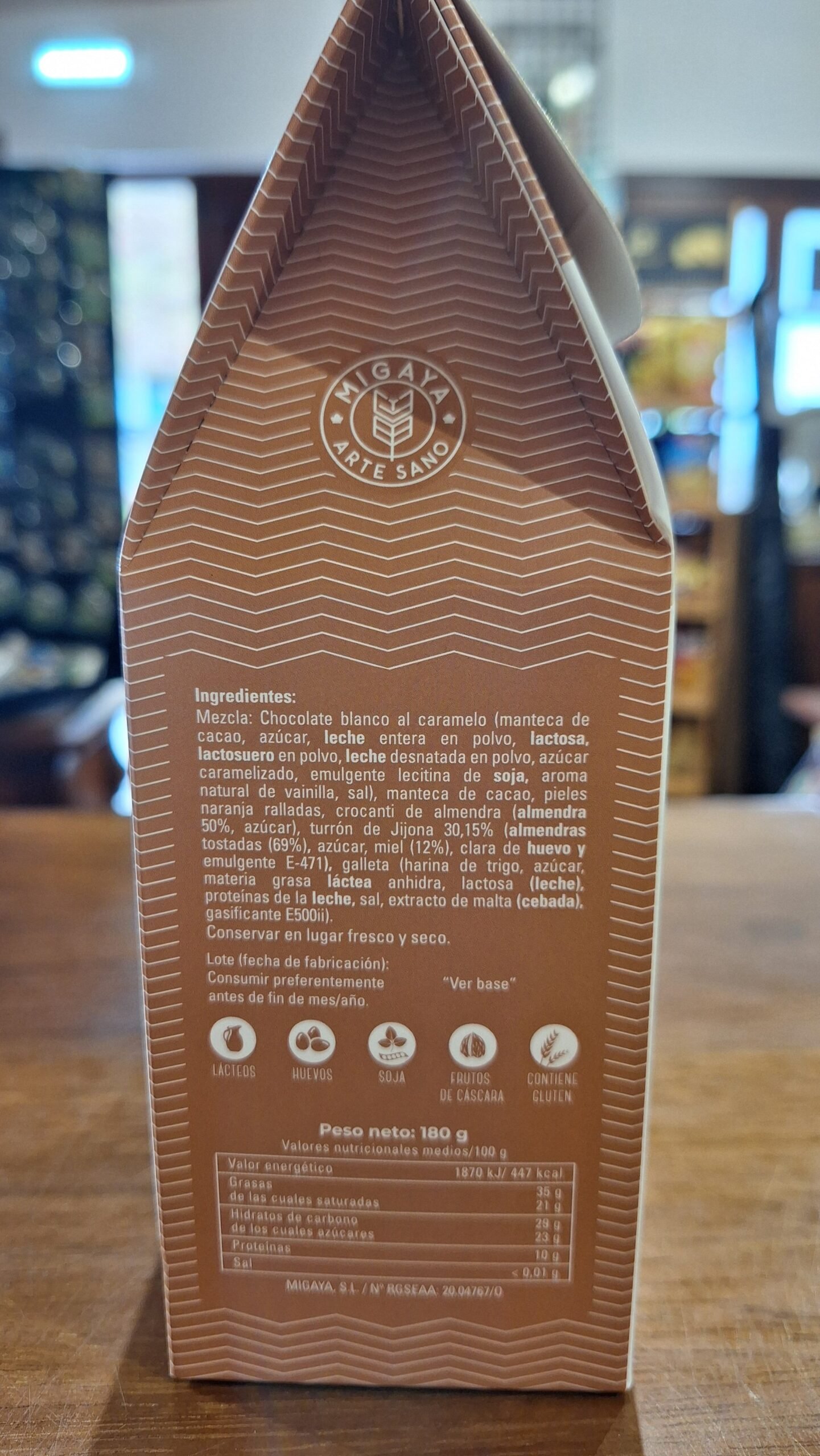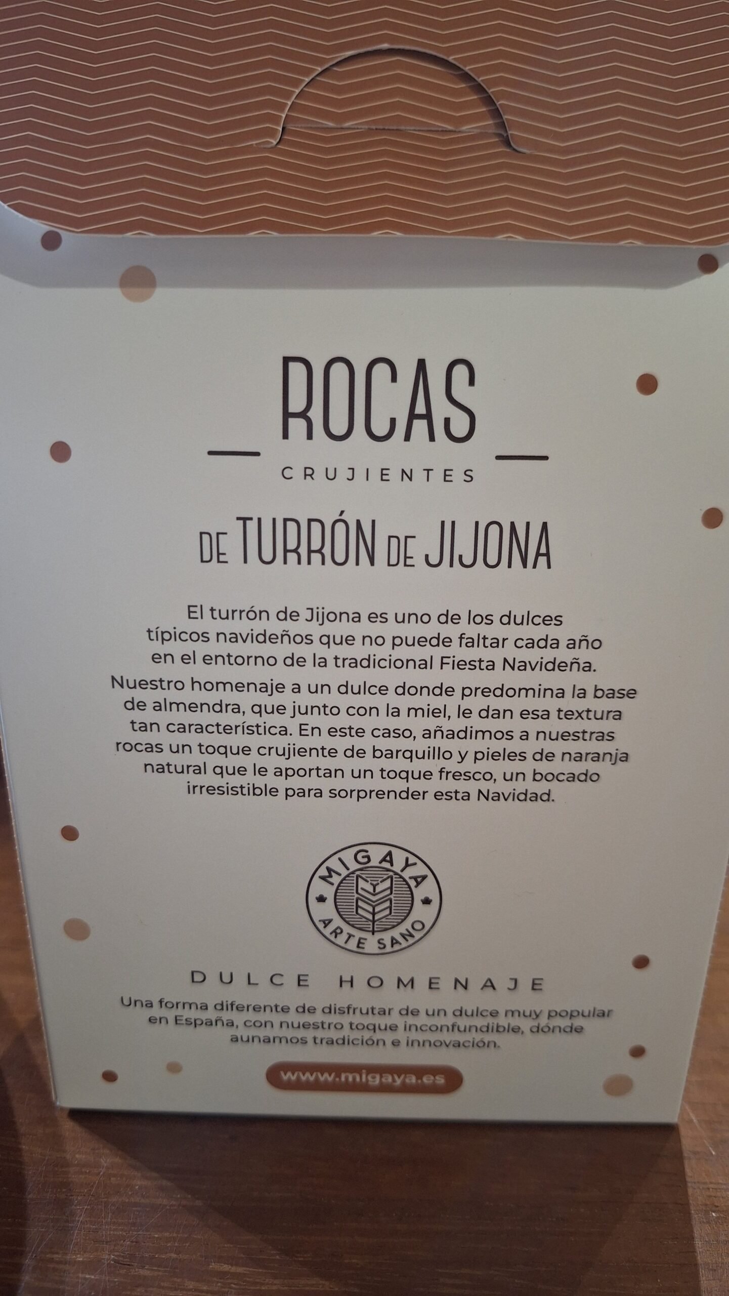 Rocas crujientes de Turrón de Jijona elaboradas en Asturias por Migaya Artesano.