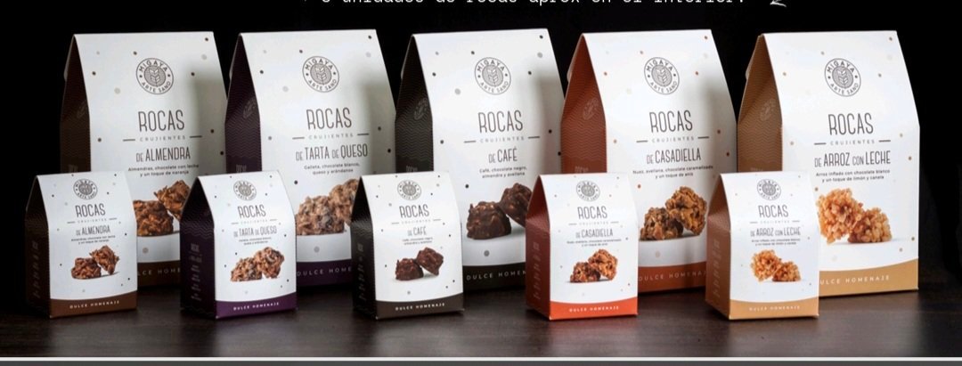 Rocas de distintos sabores (Arroz con leche, Casadiella, Corbatas, Café, Tarta de queso) de la marca asturiana Migaya Artesano.